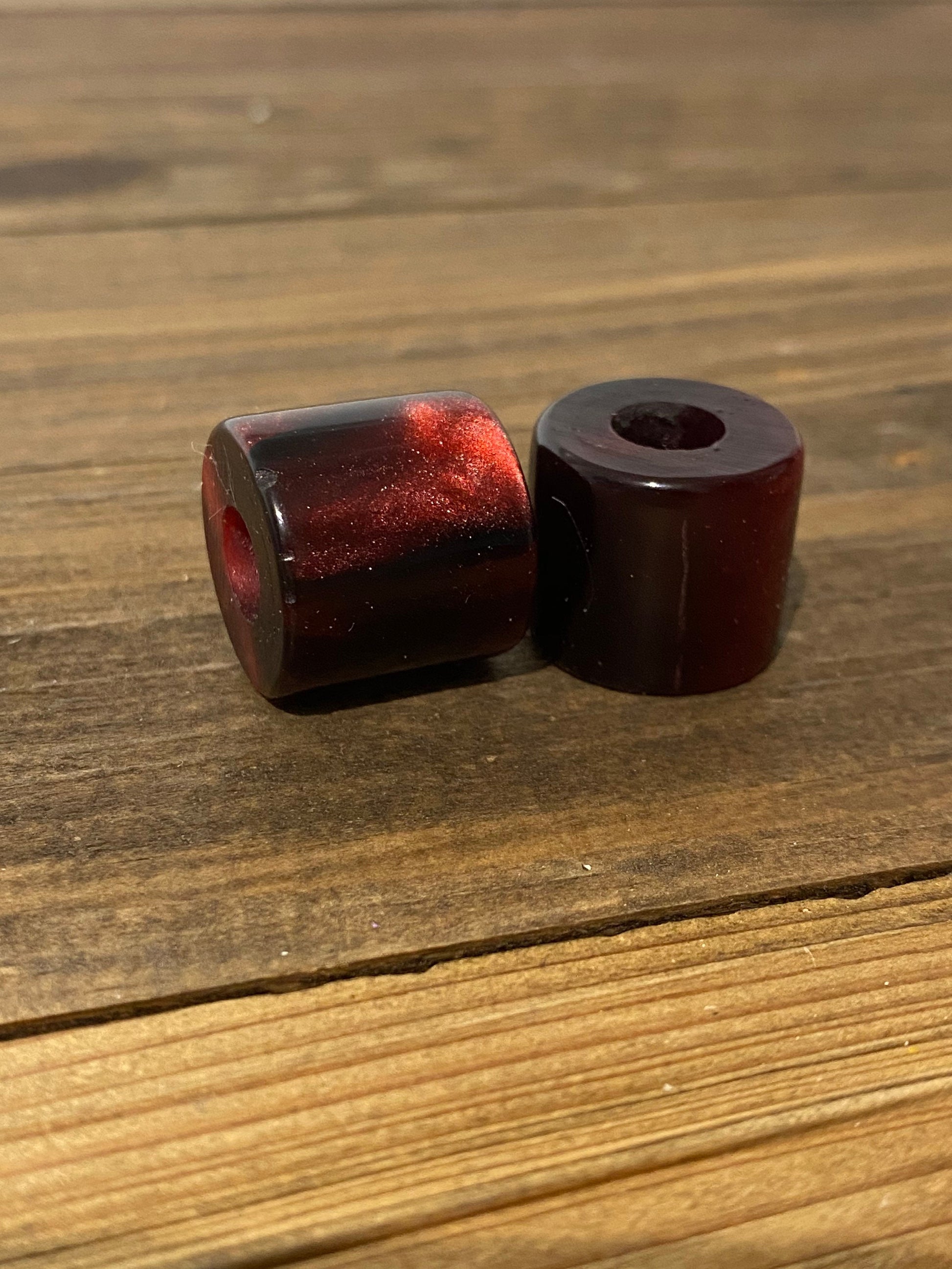 super high shine acrylic bead of deep burgundy & just a hint of black.