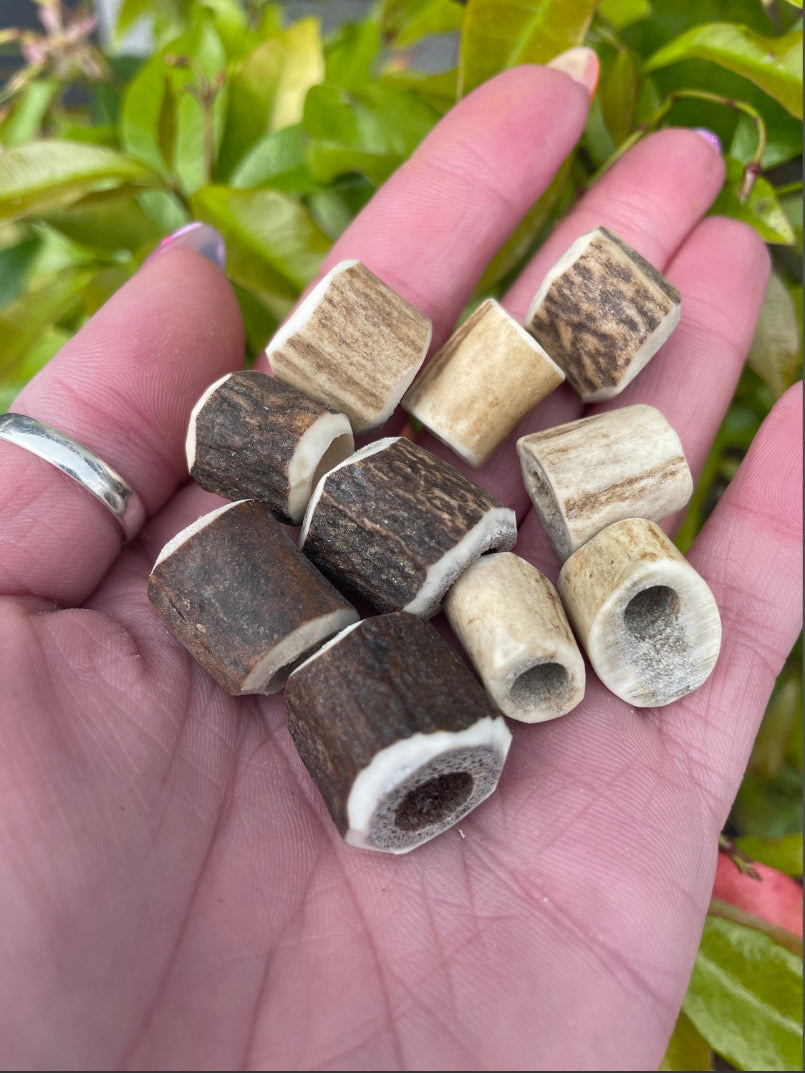 Handcrafted antler dreadlock beads made from naturally shed antlers locally.Each piece is unique, carrying the spirit of the wild and adding a rustic, organic touch to your locks. Perfect for free nature lovers and those who walk their own path.