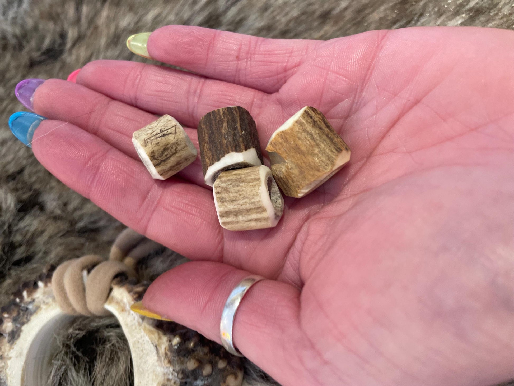 1 medium hair toggle (with either black or blonde elastic) 4 Antler beads in your chosen bead size